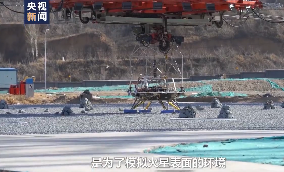 11月14日,中国国家航天局邀请部分外国驻华使馆及国际组织人员,来观摩中国首次火星探测任务着陆器悬停避障试验。这也是中国火星探测任务首次公开亮相。 本次着陆器悬停避障试验在亚洲最大的地外天体着陆综合试验场进行,模拟了火星重力环境(火星重力加速度约为地球的1/3)下“悬停、避障、缓速下降”的过程,对其设计正确性进行了综合验证。中国首次火星探测任务总设计师张荣桥介绍此次模拟试验详情。 据中国首次火星探测任务总设计师张荣桥介绍说,此次试验主要是模拟从70米高度处塔和器分离,探测器在67米高度上悬停,在这个高度上寻找地面的安全着陆区,然后避障下降到20米高度。 为了模拟火星表面的环境,在现场地面上铺设了特殊材料形成坑或者坡的形状,同时建设了一套塔柱高140米,形成内圈直径120米的设施,来模拟探测器在火星重力环境下的着陆。
