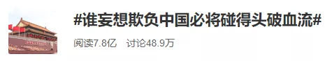 话题#谁妄想欺负中国必将碰得头破血流#迅速登上热搜,短短几小时,阅读就超过7.8亿。(截至发稿,阅读量还在快速增加。)