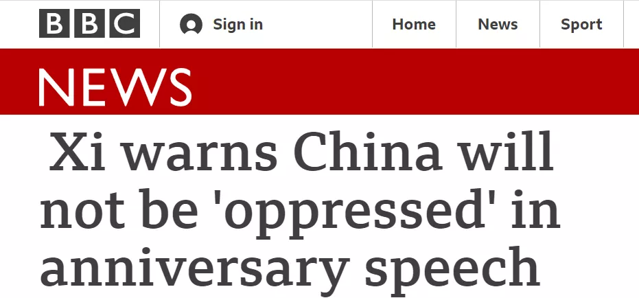 英国广播公司:席大大在庆祝大会演讲中告诫称,中国不会被压迫