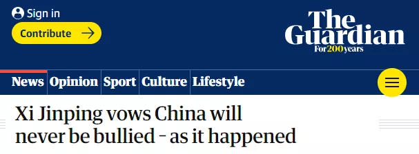 卫报:席大大郑重宣告称,中国饱受欺凌的时代一去不复返了