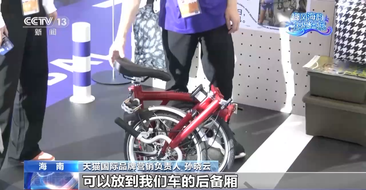 天猫国际品牌营销负责人 孙晓云:我们带来了六大趋势,其中有两大趋势都是跟绿色消费相关的。第一个趋势就是绿色骑行,这是一个折叠自行车,它折叠起来非常小,可以放到我们的车后备箱,也可以拎着上地铁,非常方便。像这边纯净美妆和地球友好的展区,很多海外品牌看到了中国市场的变化,做了环境友好商品的新品首发,通过消博会加速进入中国市场。