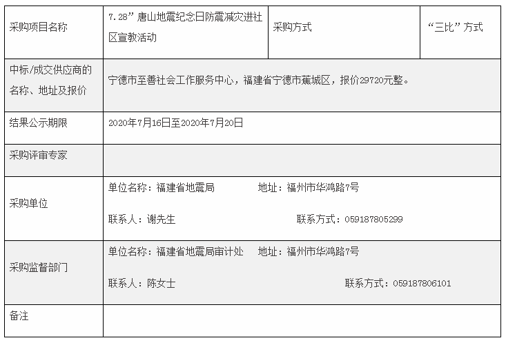 “7.28”唐山地震纪念日防震减灾进社区宣教活动采购结果公告