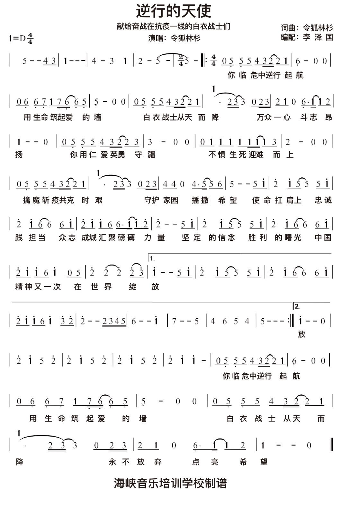 《逆行的天使》歌谱