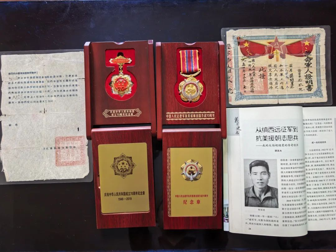 “父亲一辈子不爱说话,可那些证上的红章,比任何语言都有分量。”胡天文记得,第一次帮父亲整理旧物时,指尖抚过“中国远征军”“第四野战军”“抗美援朝”等字样,才惊觉这位不识字的父亲,竟把大半个世纪的家国记忆,都锁进了沉默里。