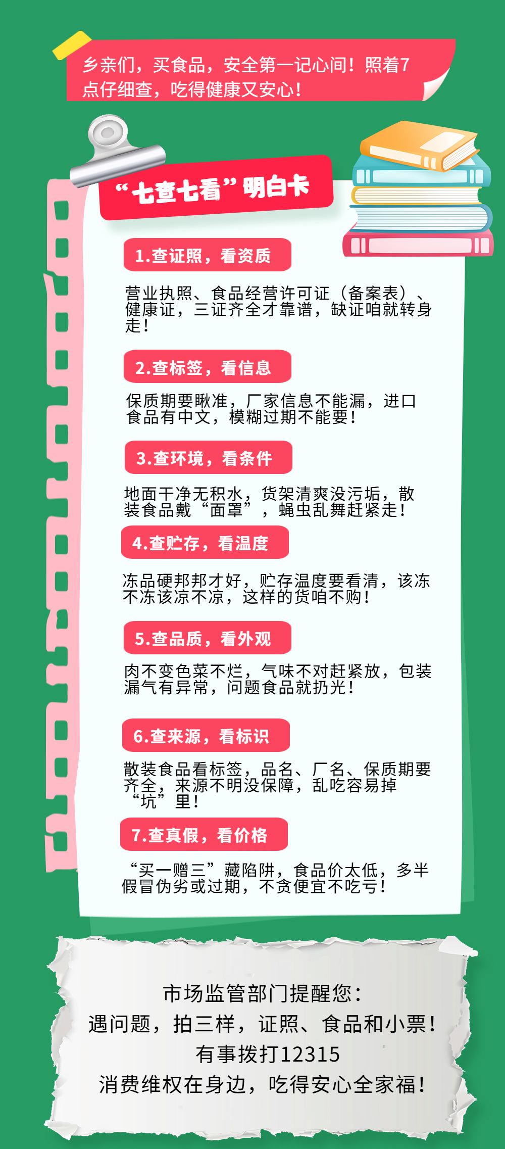 去镇上赶集买干货 在村口超市囤调料 是不是常犯嘀咕 “这包装没写全咋整?” “咋知道这东西是不是正经渠道来的?” 别愁! 福建省市场监管局专门给咱消费者备了 “升级版” 安全指南 《农村食品消费“七查七看”明白卡》! 快一起了解~
