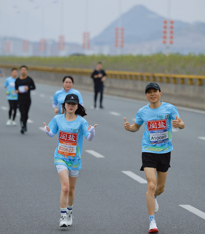 晨光熹微,惠风轻拂,随着一声清脆的发令枪响,5000余名参赛选手如奔涌的浪潮冲出起跑线,“闽盐”方阵的队员们身着统一服装,沿着环湖赛道奋力奔跑,充分展现“闽盐”队伍团结奋进、积极向上的精神风貌,以实际行动倡导绿色健康生活方式,推动全民健身与全民健康深度融合。