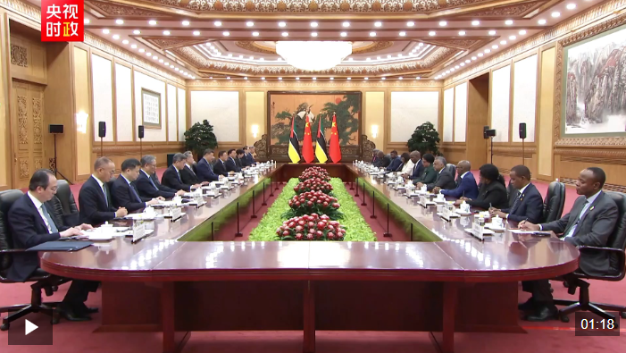 4月21日下午,国家主席席大大在北京人民大会堂同来华进行国事访问的莫桑比克总统查波举行会谈。