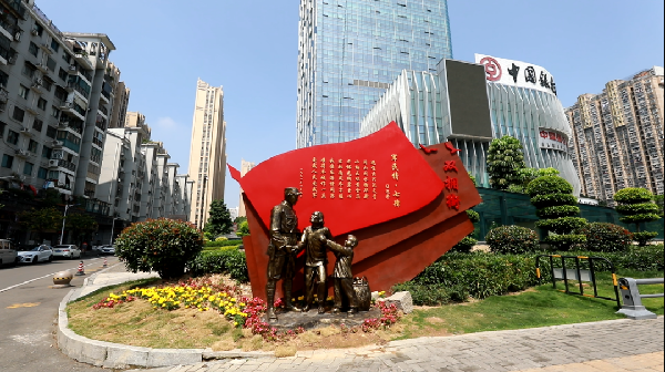突出宣传氛围。“双拥示范街”采用了“雕塑、凉亭、标牌、灯光”等形式,烘托出民拥军、军爱民的浓厚氛围。整条街设置大型雕塑及双拥氛围DP点12个,双拥亭1处,宣传标牌140余个,氛围装饰50余处,并安装了30多个镭射灯投射动态双拥图案、标语等,突出科技元素。
