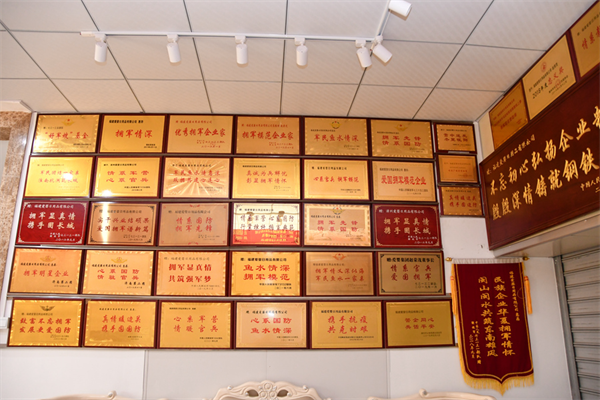 赵荣茂公司墙上挂着近百块拥军牌匾。漳州市退役军人事务局供图 回到公司后,赵荣茂经过多次调研,同技术人员一起攻关调整产品技术,分批次、无条件将适合海训官兵的无蚊香膏、蚊患舒缓液等护肤品送到他们手中。仅2021年下半年,赵荣茂就先后为6支部队送去价值约200万元的护肤品,深受海训官兵喜爱和好评。 2021年5月,赵荣茂在福建省外考察期间,得知某训练基地的官兵因天气干燥、昼夜温差以及风沙等问题,特别是女兵,急需某款护肤品。彼时,赵荣茂的公司已停止生产该款护肤品。 “部队有需求,我们有困难也要克服。”赵荣茂随即安排公司开足马力生产该款护肤品,全力支援野外驻训部队训练,先后为官兵们送去价值约200万元的产品。 心系留守军属 全力保障后方 8年拥军路上,赵荣茂也成了不少困难军属的“及时雨”。 得知军嫂有困难,赵荣茂总会第一时间前去探望,并送去慰问品。他还同驻军协调成立“好军嫂关爱基金会”,筹得善款5万余元,用于帮助家庭经济困难的军属。 除了军属,退役军人也是赵荣茂时刻关心的对象。目前,有2名退役军人在他的公司就业。多年来,他自掏腰包用于帮助困难退役军人的支出已达10万元。 坚持倾力拥军,赵荣茂“图什么”?“我啥也不图!我从小就有一个军人梦,既然穿不上军装,那就要为穿军装的人服务。”赵荣茂表示,正是有军人负重前行,大家才能享受岁月静好。 近百块拥军牌匾、一百余张车票、两百余封感谢信……近年来,赵荣茂和他的公司始终秉持拥军优属的优良传统,一如既往支持部队建设,真心实意做好拥军优属工作。“我们将在拥军的道路上不断前行、创新,尽己所能地研发出更多更好适合官兵使用的护肤品,为官兵身体镀上‘保护膜’,为部队建设贡献企业力量。”赵荣茂说。 |