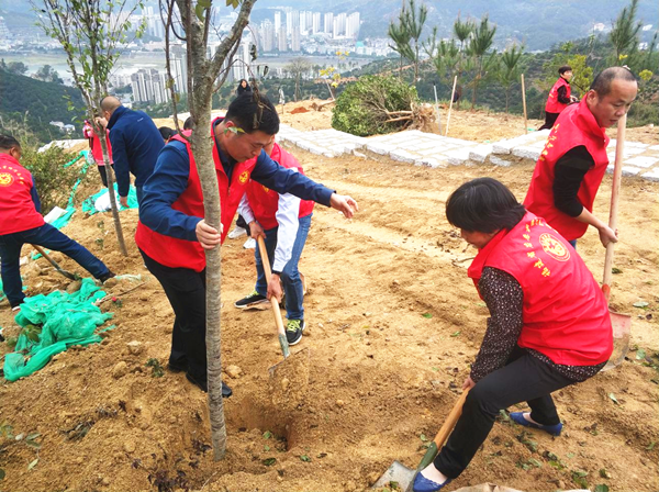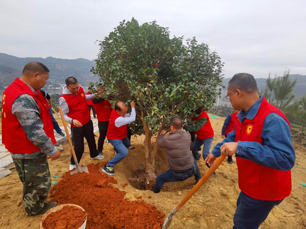梅埔村位于梅溪镇东北部,有“中国橄榄第一村”美称。来到植树点,漫山遍野的橄榄树吐露新枝,到处是春意盎然、欣欣向荣的景象。志愿者们热情高涨,一到现场,就迫不及待地干起活来。大家分工明确,挥锹、挖坑、搬树、扶苗、铲土、填坑、整垄、浇水,相互合作,配合默契,个个干劲十足。经过1个多小时的辛勤劳动,几十株新栽种的山樱花、山茶花、石榴树迎风而立在山头,焕发出勃勃生机。 活动结束后,志愿者们纷纷表示,参加这次