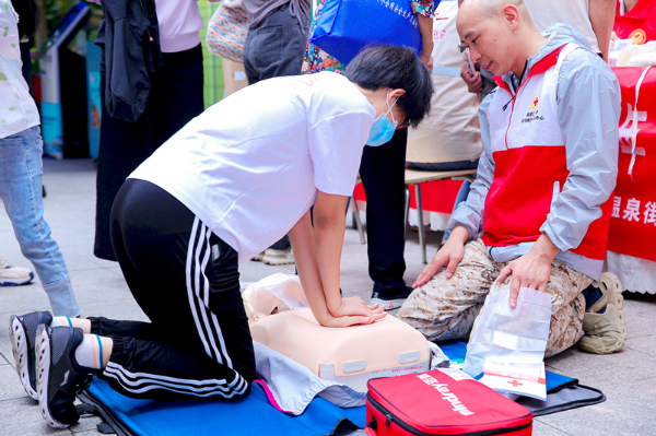 红十字会还为居民宣传普及防溺水知识、心肺复苏现场教学;星光救援队为居民讲解家庭防火自救知识、科普绳索救援知识、展示救援设备;海容社工开展“有备无患”游园互动游戏,进一步提高居民家庭的自我救援能力。