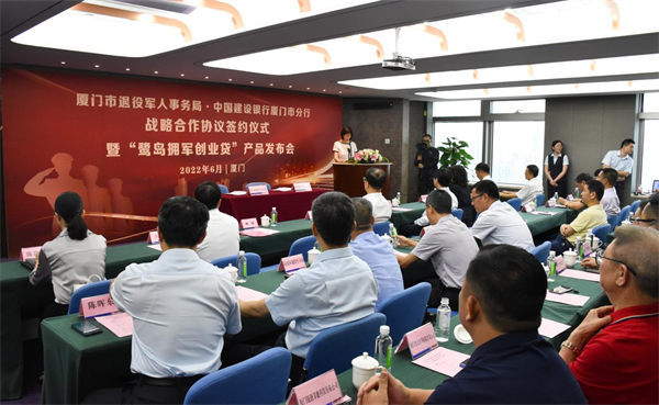 2022年9月16日,厦门市退役军人学院成立 2019年以来,厦门共有135名退役军人到中小学任教任职。相关工作情况被退役军人事务部简报刊发推广,中央电视台和《解放军报》等军地媒体专题予以报道。 50亿鹭岛拥军创业贷:成就老兵创业梦 “5年内为退役军人企业提供总计50亿元人民币的授信额度。” 2022年,厦门率先推出“鹭岛拥军贷”,面向全市符合条件的退役军人提供无需抵押和担保的专属优惠贷款服务,具有高授信额高贷款额、优惠利率、优先办理、优配额度的特点。这是落实党中央、国务院关于退役军人就业创业工作决策部署的创新举措。