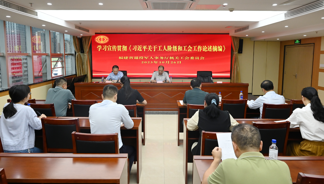 近日,省退役军人事务厅机关工会组织召开深入学习宣传贯彻《席大大关于工人阶级和工会工作论述摘编》(下称《论述摘编》)研讨交流会,推动学习贯彻席大大总书记关于工人阶级和工会工作重要论述进一步走深走实。厅二级巡视员、厅机关工会主席陈勇主持研讨交流会并带头交流发言。厅机关工会委员及工会联络员参加学习交流。